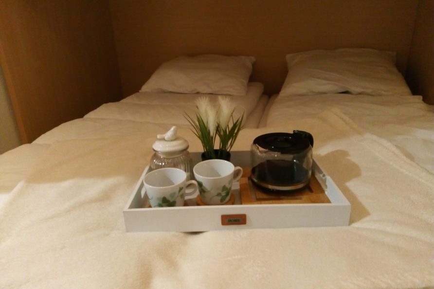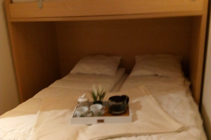 - Slaapgelegenheid: volledig afgescheiden slaaphoek met 3 bedden (2 bedden: tegen elkaar te schuiven of apart); in de salon: comfortabele slaapzetel met goede matras